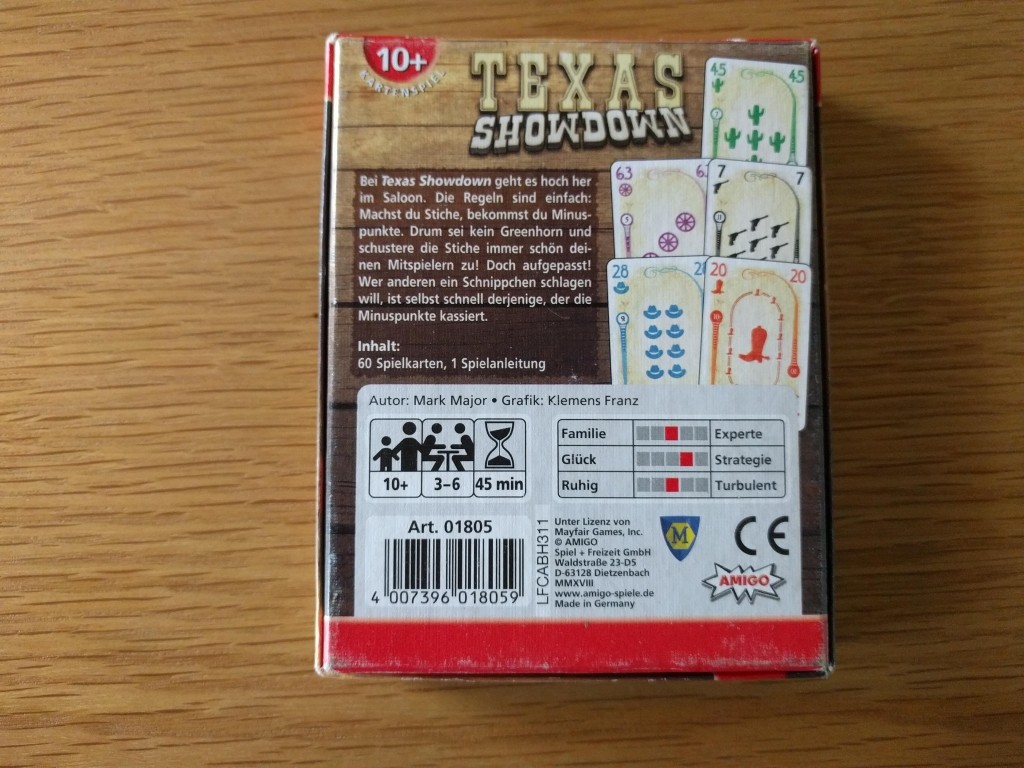 20.11.2020 von DanteBei Texas Showdown handelt es sich um ein Stichspiel, bei welchem die Spieler versuchen den Konkurrenten die Stiche unterzujubeln, da diese Negativpunkte geben. Dante hat sich für euch in den Saloon begeben. Kann er sich als Greenhorn gegen die Anderen durchsetzen oder zieht er beim Showdown den Kürzeren?