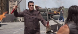 Im realen Leben ist Ex-Knacki Danny Trejo ein netter Kerl, hilfsbereiter Nachbar und liebevoller Familienvater. Im Leben als Schauspieler aber zeigt er sich als tätowierter Bösewicht und Antiheld, dessen vernarbtes Gesicht nicht nur einmal Fahndungsplakate in diversen Filmen verschönerte. Unzählige kleine und große Rollen haben Trejo längst zu einer festen Größe im Actionfilmsegment gemacht. Desperado, From Dusk Till Dawn, Con Air, Predators … Seine Filmografie scheint grenzenlos zu sein. Doch vor allem durch den Blockbuster Machete überzeugte Trejo Regisseure und Drehbuchautoren weltweit. So landete er schließlich auch auf Jeremiah Hundleys Darsteller-Wunschliste für The Mercenary und konnte eine Nebenrolle ergattern. Und damit nimmt das Elend seinen Lauf …