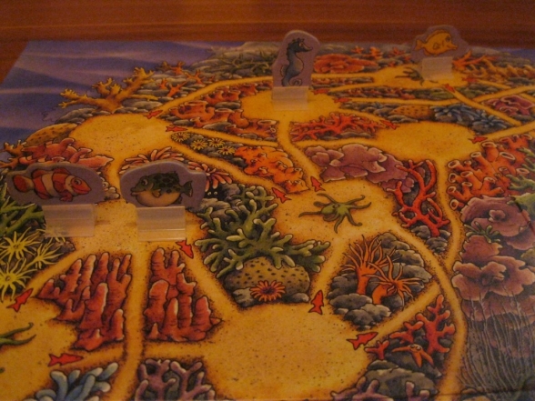 Der Clownfisch, der Zitronenfisch, der Kugelfisch und das Seepferdchen sind auf Erkundungstour im Riff. Ihr Ziel ist es, bei ihrer Runde durch das Riff all seine Bewohner zu entdecken, was durch das Umdrehen der Plättchen veranschaulicht wird. Gespielt wird zusammen. Gelingt es allen Spielern, bis zur Rückkehr auf das Startfeld alle Plättchen umzudrehen, so gilt das Spiel als gewonnen. Bleibt auch nur ein Plättchen verdeckt, so ist das Spiel leider verloren und die Fische können sich auf eine neue Erkundungstour begeben.