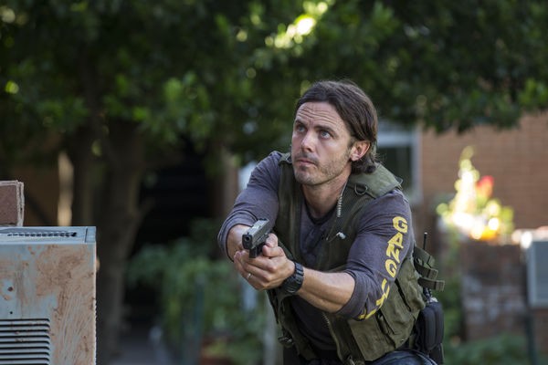 Butterweich lief der Überfall. Rein, ein paar Löcher in die Decke gestanzt, Schließfach ausgeräumt und wieder weg. Hätten Michaels Mannen dann noch die Farbpatrone bemerkt, die die ganze Kohle versaut und fast die Flucht ruiniert hätte, wäre es der perfekte Raub geworden. Doch darum ging es gar nicht. Es sollte der letzte Auftrag für die Russenmafia, geführt von Michaels Ex-Schwägerin Irina (Kate Winslet), werden, doch wer traut schon der Mafia. Der wirklich wirklich letzte Auftrag führt Michaels Trupp aus korrupten Cops und Ex-Special Forces in ein schwer bewachtes Gebäude der Homeland Security. Unter anderen Umständen hätten sie diesem Auftrag niemals zugestimmt, aber Irina hält Michaels Sohn quasi als Geisel und hat ihn somit in der Hand. Also muss das Unmögliche möglich gemacht werden. Und zwar mit einem Triple 9: Dem Polizeicode für einen Polizistenmord. Wie unglaublich praktisch, dass einer der korrupten Cops in Michaels Team gerade einen neuen Partner namens Chris (Casey Affleck) zugewiesen bekommen hat. Perfektes Kanonenfutter, wäre Chris nicht der Neffe von Übercop Jeff (Woody Harrelson). Um es mit den Amis zu halten: Die Scheiße gedenkt den Ventilator zu schlagen.