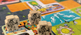 In Schritt 3 des Angriffs wird der Kampf ausgeführt. Nun werden die gespielten Karten gleichzeitig aufgedeckt. Zuerst werden Karteneffekte mit dem Stichwort „sofort“ ausgelöst. Das kann z.B. sein die Karteneffekte des Gegners aufzuheben, ganz gemein! Danach werden Karteneffekte ausgelöst, die „während Kampf“ triggern. Diese könnten z.B. den Angriffs- oder Verteidigungswert unter bestimmten Voraussetzungen weiter erhöhen. Dann wird der Kampf abgehandelt: Der ggf. modifizierte Angriffswert des Angreifers minus des Verteidigungswerts des Verteidigers ergibt den Schaden, den der Verteidiger einstecken muss. Am Ende des Kampfes triggern noch Karteneffekte, die „nach Kampf“ stattfinden. So gibt es Karten, die bei erfolgreichem Angriff eine Neupositionierung auf dem Schlachtfeld erlauben. Haben sowohl Angreifer als auch Verteidiger Karten mit Karteneffekten gespielt, die zur selben Zeit ausgelöst werden, wird die Karte des Verteidigers zuerst abgehandelt – und wir haben gelernt, dass dies nicht immer von Vorteil sein muss. Es können noch weitere Spieleffekte nach dem Kampf stattfinden, die erst nach den Karteneffekten abgehandelt werden. Dann kommen alle Karten auf den jeweiligen Ablagestapel. Ist zu einem bestimmten Zeitpunkt ein Held besiegt, so endet das Spiel sofort und der Sieger steht fest!