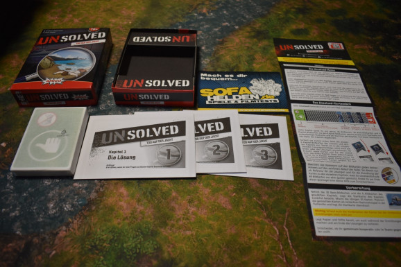 Unsolved - Tod auf der Jacht ist ein kooperatives Krimispiel, bei dem es darum geht mit Hilfe der Hinweise auf den Karten, die auf der Startkarte dargestellte Situation zu erklären. Dabei müssen am Ende des Spiels fünf Fragen beantwortet werden. Je nachdem, ob Ihr in Teams gegeneinander oder gemeinsam spielt, müsst Ihr am Rundenende die Fragen gemeinsam oder getrennt voneinander bewerten.