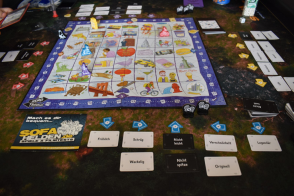 Word Traveler ist ein kooperatives Spiel, bei dem Ihr als Einheimische erraten müsst, welche Routen zu welchen Sehenswürdigkeiten die reihum wechselnde reisendende Person gerne nehmen möchten. Das gelingt durch die Wortkarten, die Euch Hinweise geben. Liegt Ihr mit Euren Vermutungen richtig, gibt es viele Punkte und Ihr sammelt die Souvenirs. Nach zwei Tagen Besichtigung endet das Spiel und Ihr führt die Endwertung durch. Je mehr Souvenirs Ihr gesammelt habt, desto besser Eure Wertung.